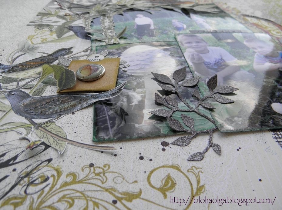 тут объемчик виден, я все элементы приклеивала только в серединке, а верхнуюю часть листочков и птичек оставляла, для реальности)))